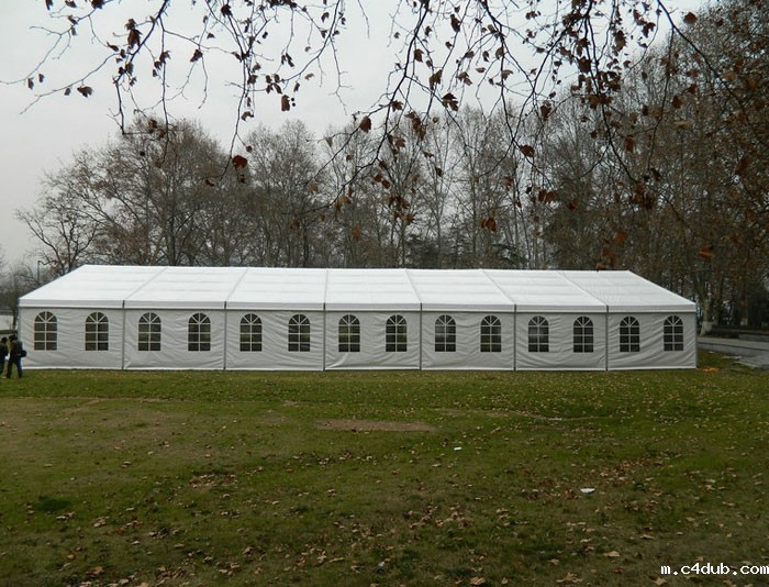 酒席帐篷采用高强度铝合金框架,坚固耐用,双面PVC涂层刀刮布,并有多种颜色可选用,抗风防雨,一至两天就可搭建完一个非常大的酒席帐篷,再经过匠人们的精心装饰,很快就会成为一座豪华的非常温馨的婚礼殿-堂。